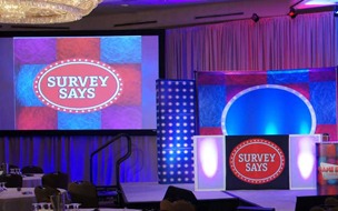 イベント会場に設置されたスクリーンに映し出されたクイズ問題!ご参加の皆様のお手元にあるスイッチが連動。一体感のあるイベントが実施できます!