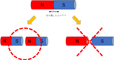 棒磁石を切ったら、その切り口はどっちの極になるか?