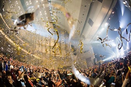広いホール、体育館などであっても、さきほどの変身テクニックが使えます。壁面、床面、ライティングを駆使して見違えるようなパーティイベント空間へ!光と影をうまく使って、見せたくない普通の壁は闇に隠してしまいましょうね。数千人規模の大きなパーティだと、会場が押さえられないケースもあります。そんなとき、ホテルでないただの倉庫に来てみたらビックリサプライズ!!!!という演出もできるわけです。